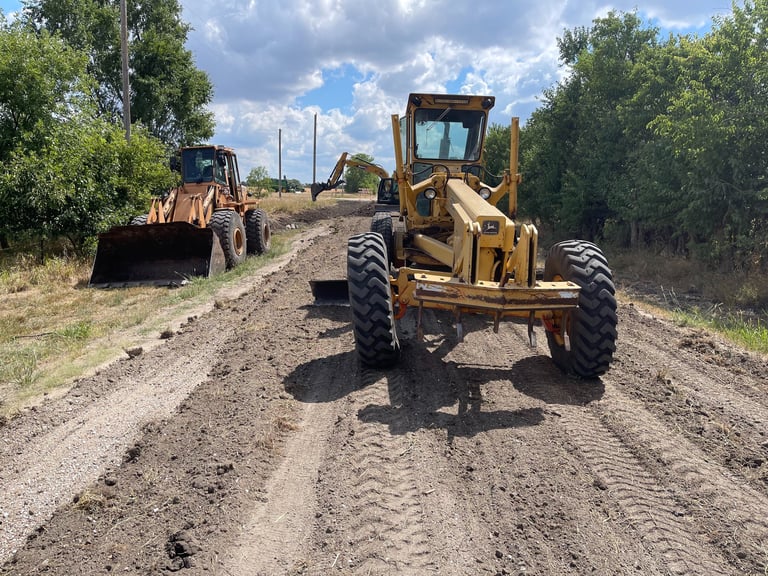 We enjoy working with small towns and townships. Need help with hauling (dirt, crushed rock, and aggregates for roadways or any other projects) or grading roads or weather-related support, we can help! We're members of KMU, give us a call!